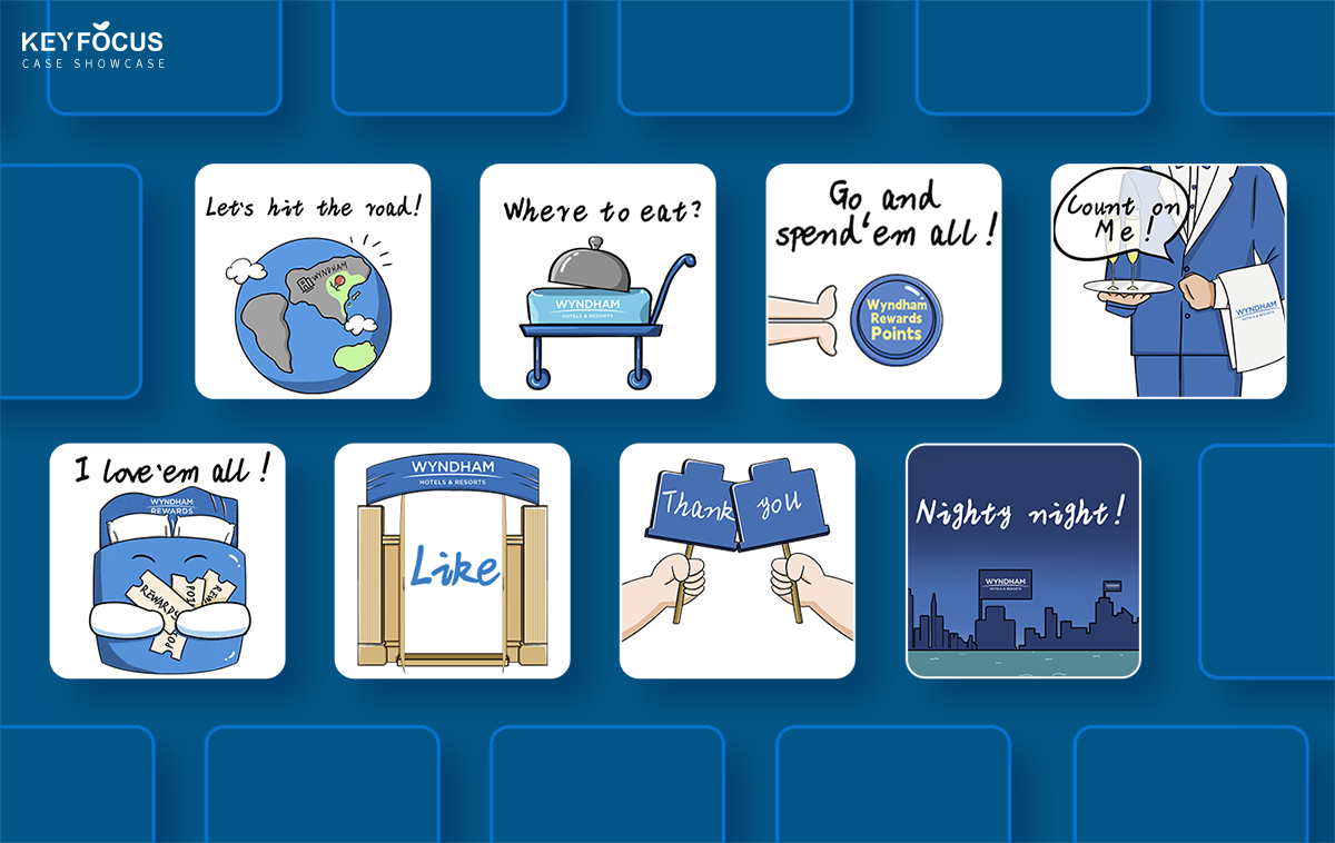 Designing cute and entertaining branded emoji stickers for Wyndham,through the use of these stickers, the brand can forge deeper emotional connections with users, providing them with a fresh way to engage with the brand.